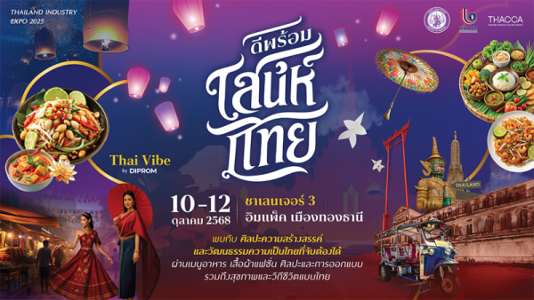 กระทรวงอุตสาหกรรม โดย กรมส่งเสริมอุตสาหกรรม หรือ ดีพร้อม (DIPROM) จัดงานมหกรรม ‘ดีพร้อมเสน่ห์ไทย (Thai Vibe by DIPROM)’ ระหว่างวันที่ 10-12 ตุลาคม 2568 ณ อิมแพ็ค ชาเลนเจอร์ ฮอลล์ 3 เมืองทองธานี เพื่อขับเคลื่อนพลังซอฟต์พาวเวอร์ด้านอุตสาหกรรมอาหาร และแฟชั่นไทยใน 4 มิติหลัก ได้แก่ อาหารและเครื่องดื่ม แฟชั่นไทย ศิลปะและการออกแบบ และสุขภาพและวิถีชีวิตแบบไทย งานมหกรรมครั้งนี้จัดขึ้นเพื่อเป็นเวทีระดับชาติในการสร้างเสริมความร่วมมือจากภาคีเครือข่ายทุกภาคส่วน ทั้งผู้ประกอบการ SMEs ชุมชนท้องถิ่น และประชาชนทั่วไป ในการส่งเสริมและยกระดับอุตสาหกรรมอาหาร